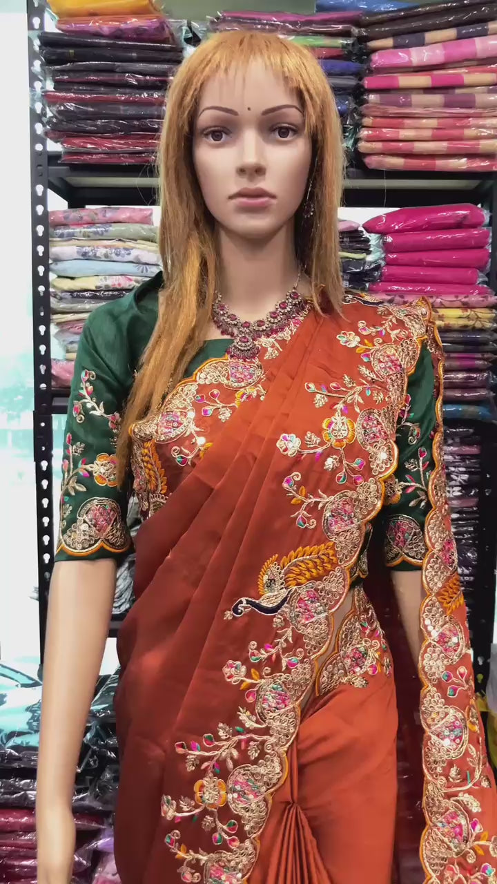 Looking some one for this same colour beautiful  Saree for wedding on premium Soft Rangoli  Silk fabric with C-pallu All Over White Codding & Multi Embroidery Work Butti &  Cutwork Border and Heavy Embroidery Work blouse Peice.