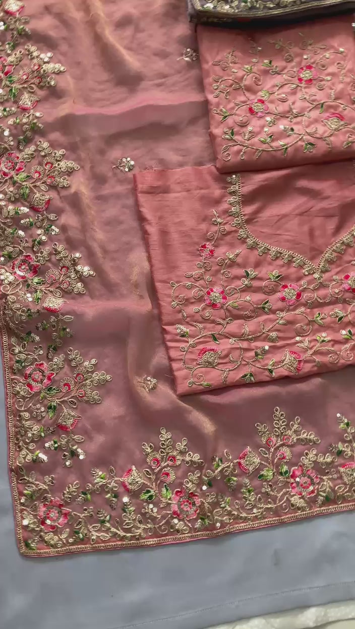 ** New Lunching #                                                                                       Looking some one for this same Two Tone colour beautiful  Saree for wedding on premium Soft NxC Moss   Chiffon  fabric with Embroidery cut Work aarco Border With Running Work blouse Peice.